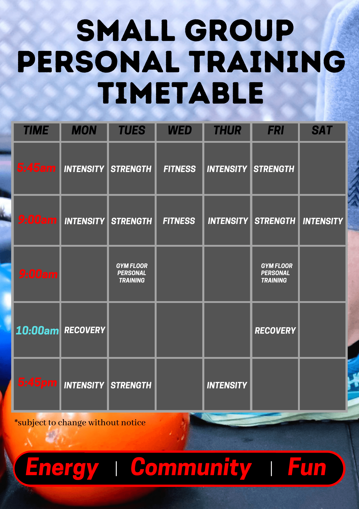 | 5.45AM | INTENSITY | STRENGTH | FITNESS | INTENSITY | STRENGTH | Â | Â |